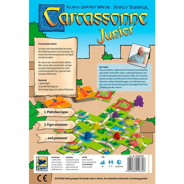 Am 14. Juli, dem Nationalfeiertag in Frankreich, werden traditionell die Schafe, Hühner und Kühe freigelassen. Die Kinder von Carcassonne haben den ganzen Tag einen Riesenspass daran, die Tiere bis zur Abenddämmerung wieder einzufangen. Diese stark vereinfachte Variante des Millionen Bestsellers Carcassonne macht den kleinen Spielern genauso viel Spass wie den Großen. Hier müssen keine Punkte gezählt werden. Wer zuerst alle seine Kinder auf der wunderschön gezeichneten Landschaft eingesetzt hat, gewinnt den heiteren Wettstreit.Art.-Nr.: 1526512