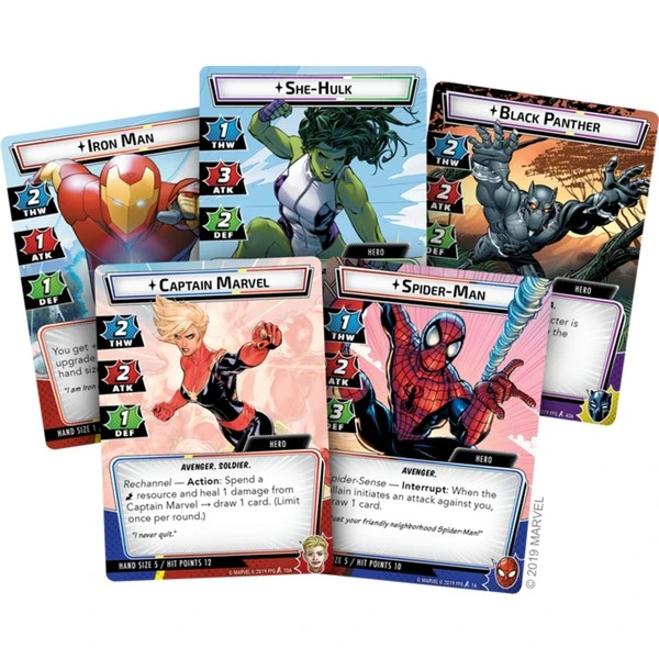 Mit über 350 Karten, 100 Markern, fünf Schadens-Trackern und vielem mehr ist das Marvel Champions: Das Kartenspiel euer Einstieg ins Marvel-Universum. Spielt als Iron Man, Captain Marvel, Spider Man, Black Panther oder She-Hulk und kombiniert eure Kräfte mit denen anderer Helden, um eure Feinde zu besiegen! Als Living Card Game ist Marvel Champions: Das Kartenspiel erst der Anfang. Regelmäßig erscheinen neue Erweiterungen, doch im Gegensatz zu Sammelkartenspielen gibt es hier keine seltenen Karten, die man zufällig erhalten kann. In jeder Erweiterung ist ein vollständiger Satz jeder Karte enthalten. Die Erweiterungen bringen neue Helden, Szenarien und vieles mehr ins Spiel. Anders als zu früheren Living Card Games ist es bei Marvel Champions nicht nötig, mehrere Grundspiele zu kaufen, um einen kompletten Kartensatz zu erhalten.Art.-Nr.: 1727592