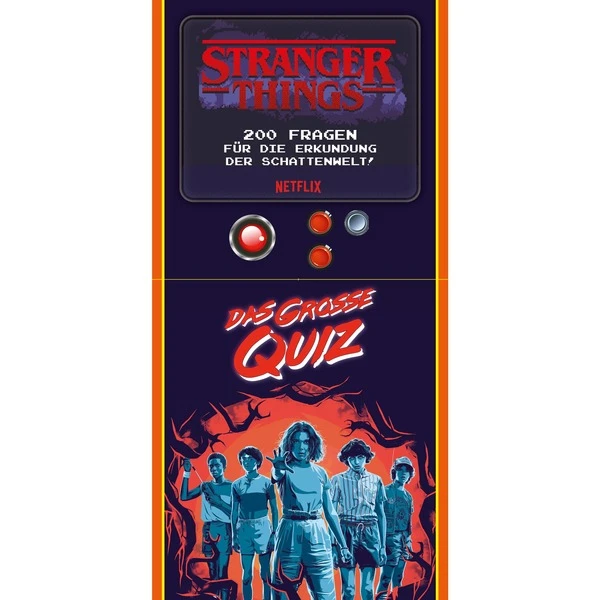 Bei Stranger Things: Das große Quiz treten bis zu acht Spieler gegeneinander an und testen ihr Wissen über die Netflix-Serie. Wer kennt die meisten Zitate, Momente und Anekdoten über die Schauspieler und ihre Charaktere? Fast 200 Fragen in drei Kategorien sind ein Test, wer sich in der Welt von Stranger Things am besten auskennt. Als zusätzlicher Hingucker kommt das Spiel in einer Schachtel in Form eines Arcade-Automaten.Art.-Nr.: 1864079