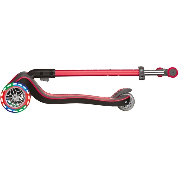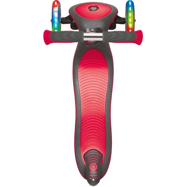Der Elite Deluxe Roller bietet mit farbiger Lenkstange und optimierten zweifarbigen Griffen jede Menge Fahrspaß. Ein neues Designkonzept ermöglicht das einfache Zusammenklappen. Ein weiteres Feature des Rollers sind die Leuchtrollen. Das mit Nylon verstärke, sehr stabile 2-Layer Deck ist tiefer gelegt und extra breit, so können leichter beide Füße aufgestellt werden. Die Bi-Injektion Trittfläche besteht aus gummiertem Antirutschmaterial. So sorgt das Deck für optimale Kontrolle und erhöht den Komfort und die Steuerung. Durch die zuschaltbare Lenkeinrastung lässt sich einfach und sicher Fahren lernen. Der Lenker ist höhenverstellbar und kann so optimal an die Größe des Kindes angepasst werden. Die ergonomischen Handgriffe im Bi-Injection Design sind langlebig und komfortabel. Der Elite Deluxe verfügt außerdem über eine optimierte und besonders breite Hi-impact double Injection Reibungsbremse mit Speichenschutz sowie über super High Rebound gegossenen PU Rollen in