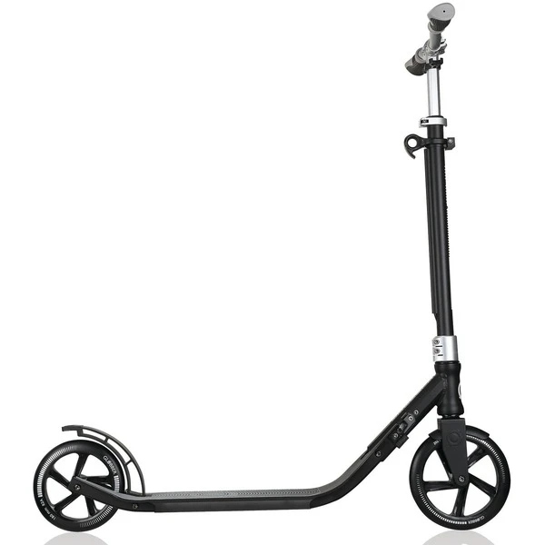 Der One NL 205/180 von Globber überzeugt mit seinem neuen Faltsystem. Über eine Klammer an der Lenkstange wird der Faltmechanismus entriegelt, sodass der Scooter sich in einer Sekunde falten lässt. Die Großen Räder (205 mm vorne, 180 mm hinten) sorgen dank 82 A Härtegrad und ABEC 7 Kugellagern für ein sportliches und dynamisches Fahrgefühl. Für Langlebigkeit sorgt das Deck aus Aluminium mit einer Anti-Rutschfläche. Der höhenverstellbare Lenker im BMX Style sorgt zusammen mit der Hinterradbremse aus extrudiertem Aluminium für Sicherheit und Kontrolle. Die Kombination aus Fahreigenschaften und einfacher Transportierbarkeit machen den One NL 205/180 zu einem praktischen Alltagsbegleiter.Art.-Nr.: 1620380